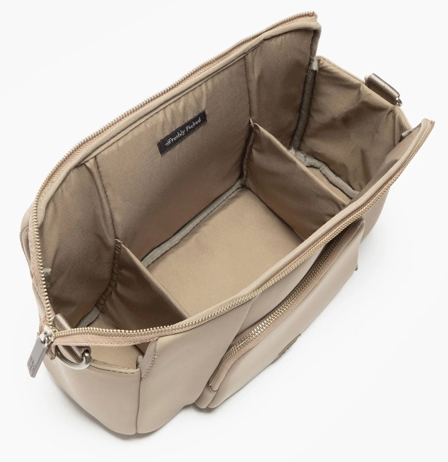 - We recommend a delicate cycle with cold water and mild detergent, followed by reshaping the bag and laying flat to dry. It’s best to put your product in a pillow case to protect the hardware while washing it!