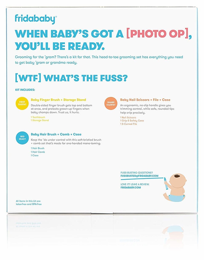 When baby's got a photo-op, you'll be ready. Grooming for the gram? There's a kit for that. This head-to-toe grooming set has everything you need to get baby gram or grandma ready.