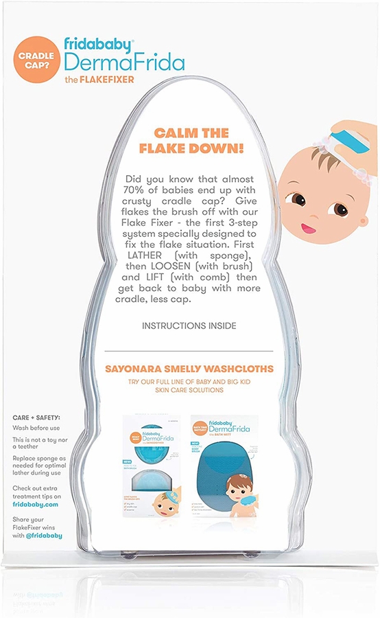 Did you know that almost 70% of babies end up with crusty cradle cap? Give flakes the brush off with our Flake Fixer - the first 3-step system specially designed to fix the flake situation. First LATHER (with sponge), then LOOSEN (with brush) and LIFT (with comb) then get back to the baby with more cradle, less cap.