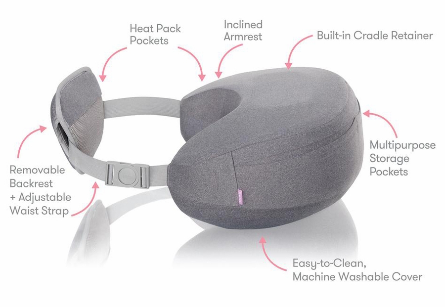- Designed with Moms in Mind: Inclined armrest reduces upper body tension, built-in cradle retainer reduces sliding + rolling while baby is learning to latch
