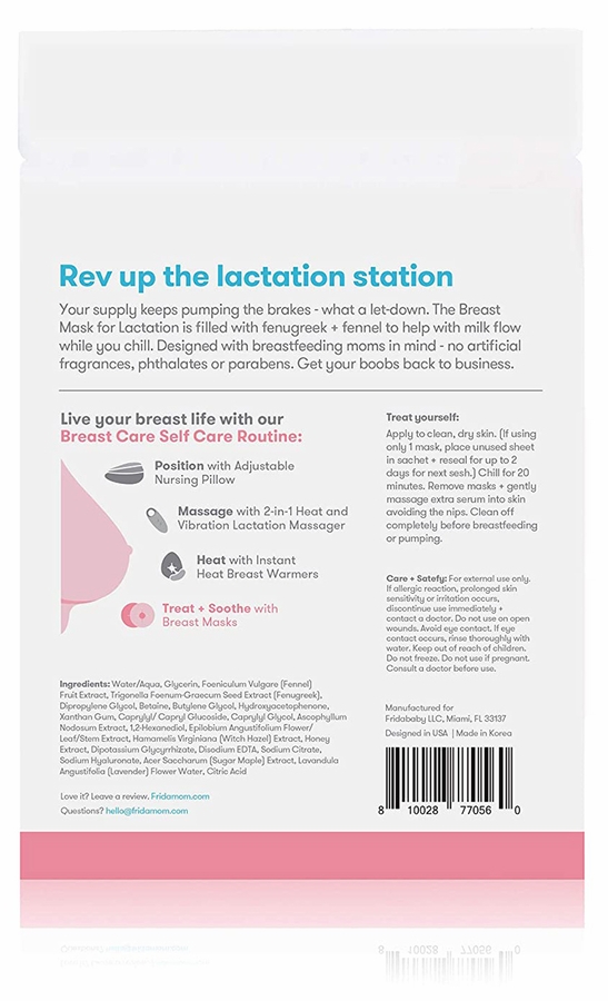 - More Frida Mom: We create products that are just as effective as they are convenient — lactation massager, heat breast warmers and breast sheet masks to give your boobs a break.