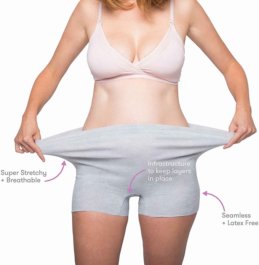 I wanted to try these high-waist disposable underwear by Frida Mom because the mesh underwear you get in the hospital usually always hook on my fingernails and the pads don't stick very well to them and they aren't very comfortable either. These, underwear are nice and soft. They don't seem to hook on my nails at all and they stretch nicely. You do have to be careful to not put so much pressure in one area as you pull them on though or there will be a hole in them. This doesn't seem to affect the usability of them though. They hold up very well even with a hole in the side. I've even washed them and they are still very durable yet. I all not due for another 3 months but this is usually the size I would be pay baby so I feel it is very comparable. The pads I have seen to stick well to these underwear as well. I've never had a c-section but I would think these would be fine for those that have because you would be able to hold an ice pack inside since they cover very well and don't roll down. They come in 2 sizes and styles, petite and regular, and boyshort and high-waist. I got the high-waist in the regular size. For reference I am 25 weeks along, weigh 226lbs and am 5'3.5" tall. It does take a little to stretch out but they don't feel tight at all once they stretch. Anyone significantly larger than this might not find them quite as comfortable though. For me personally, I feel these would be worth buying for use in the hospitalbecause I feel these would be way more comfortable and might even help to prevent some leaks because they would help the pads stay in place. I would definitely recommend them.