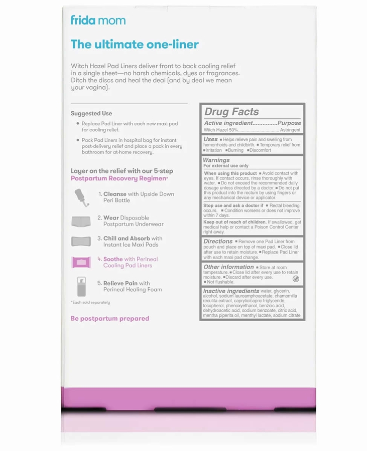 My wife got these witch hazel cooling liners for after birth and is happy they make these. They come in a little pack similar to how baby wipes would, and are small and convenient enough to throw in the diaper bag for on the go, or leave in the bathroom. There are 24 liners in a pack, and my wife is most happy with the size of them. The witch hazel pads she has used in the past are small and round, and don't offer enough coverage for the relief that she needs. These are bigger and provide coverage for the whole area, while promoting healing and relief for her. They are easy and convenient to use, just what she needs after giving birth.