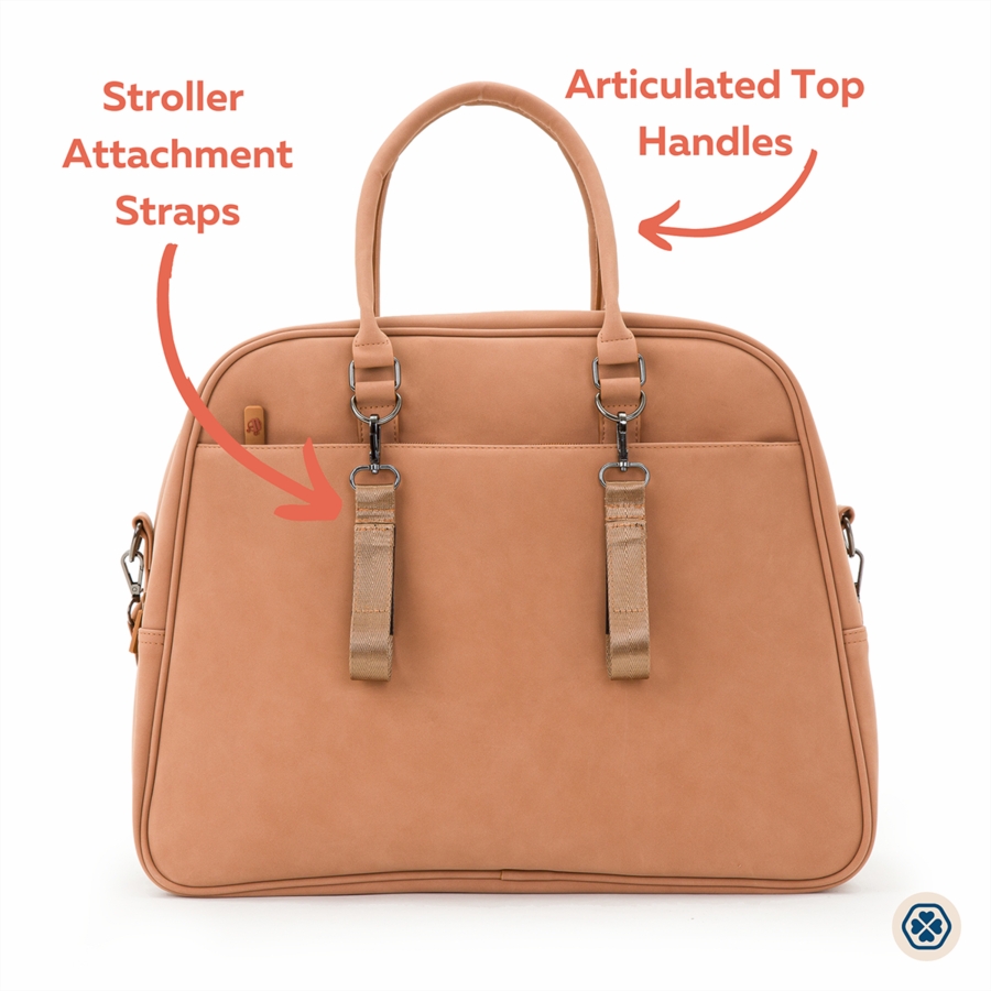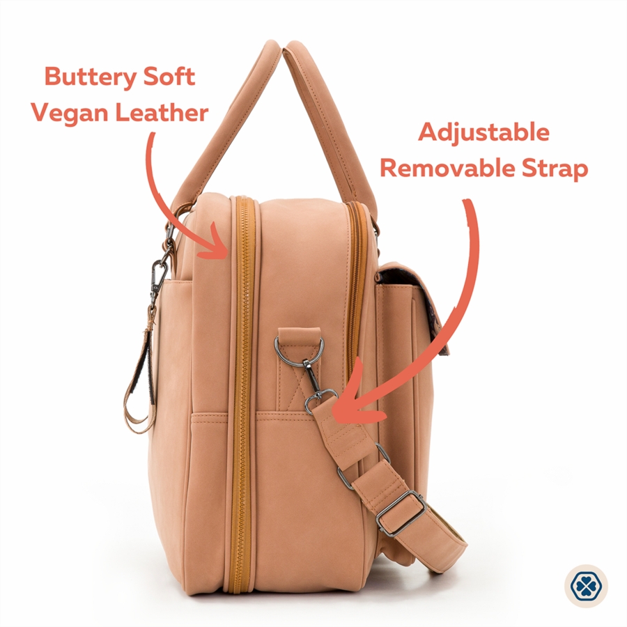 This beautiful bag comes in one of two colors of buttery soft vegan leather, Porcini or Whisper Gray, and complements any caregivers outfits and style. Both moms and dads will appreciate it!