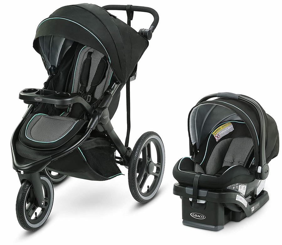 The Graco® FitFold™ Jogger Stroller folds down to 70% of its original size, making it Graco's most compact folded jogging stroller. This travel system includes the SnugRide® SnugLock™ 35 LX Infant Car Seat, for rear-facing infants 4-35 lb and up to 32 in. The removable stroller seat allows you to convert to a lightweight infant car seat carrier with ease. The stroller has air-filled rubber tires for a smooth ride and features a one-hand, one-second fold. It also has an adjustable handle and multi-position reclining seat.