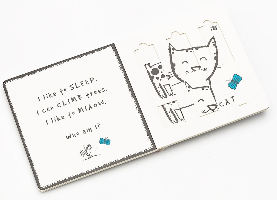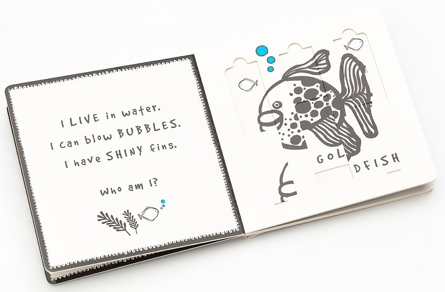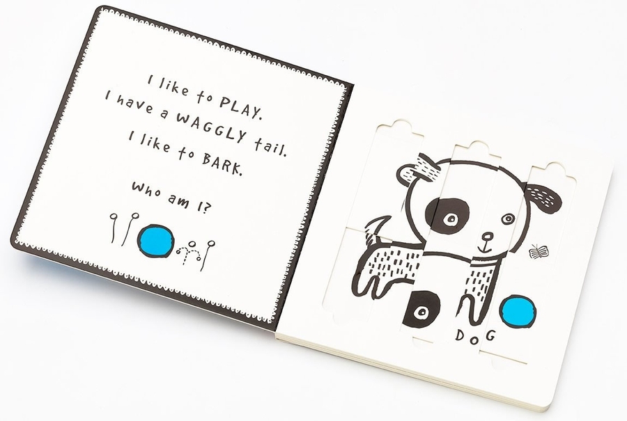 Little fingers can easily learn how to move the sliders to reveal four favorite household pets and their names in this interactive board book. This stunning range of books for pre-schoolers, illustrated with high contrast black and white bold lines, stimulate visual development with engaging educational content.