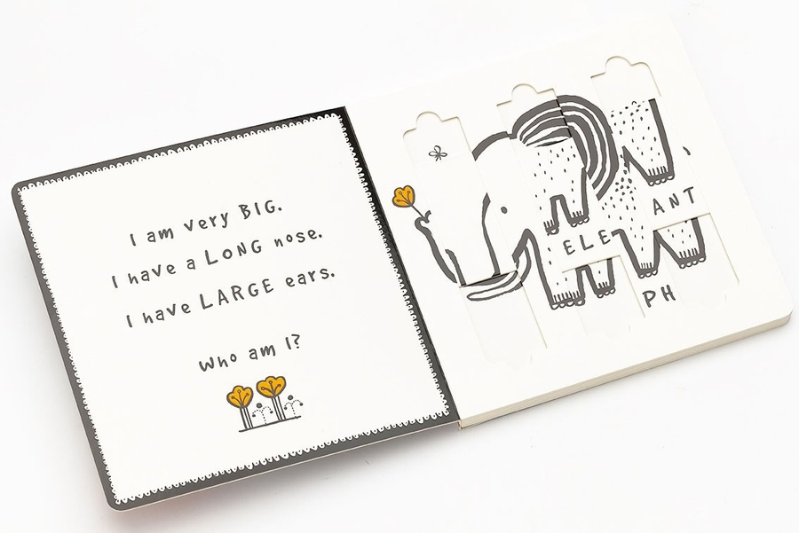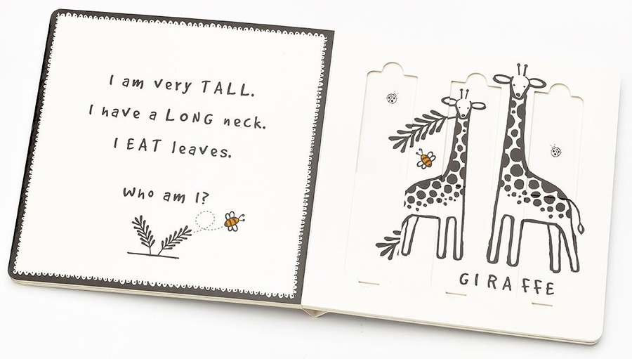 Little fingers can easily learn how to move the sliders to reveal four favorite safari animals and their names in this interactive board book. This stunning range of books for pre-schoolers, illustrated with high contrast black and white bold lines, stimulate visual development with engaging educational content.