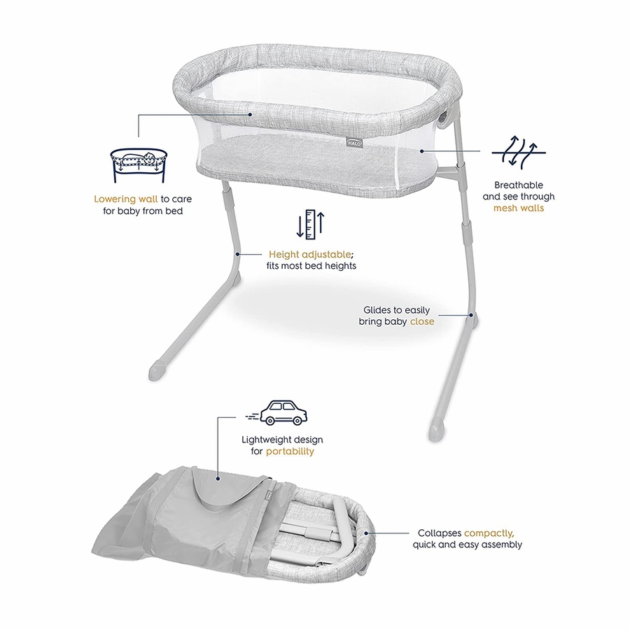 Looking for a flexible safe sleep solution or a secondary travel bassinet? Say hello to HALO BassiNest Flex™ bedside bassinet! Portable and sturdy, it’s ideal for when you’re on-the-go, whether on vacation travel or visiting family. Because it’s a lightweight bassinet, you can easily move it to other rooms around the house during daytime naps. But its biggest flex is the patented lowering bedside wall, which is super helpful for moms who are breastfeeding or recovering from a C-section. JMPA certified for top quality and safety, HALO BassiNest Flex features fully mesh walls for breathability and visibility. Easily move to bring baby close on any surface, including carpet.