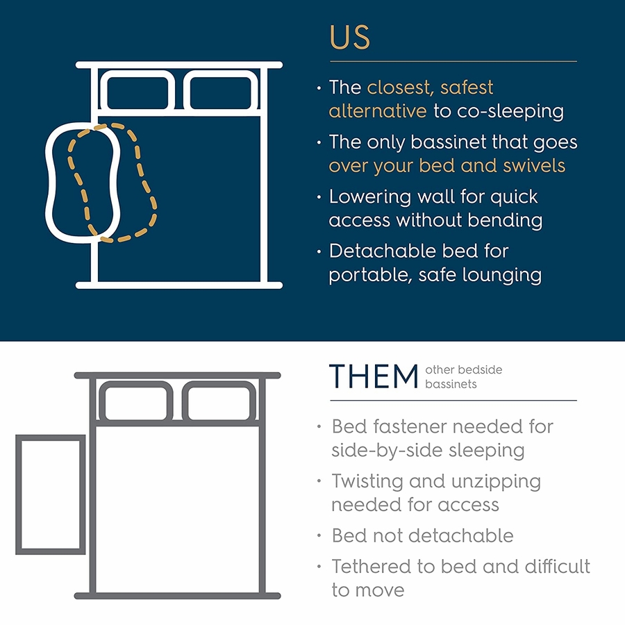 As experts in safer sleep, we upgraded our best-selling BassiNest with the all-new BassiNest Swivel Sleeper 3.0. The only bassinet that swivels 360° is now a 2-in-1 system that transforms from bedside sleeper to portable nest, becoming a safe lounger and nap space for around the house. Sleep next to your little at night and stay close to them throughout the day.
