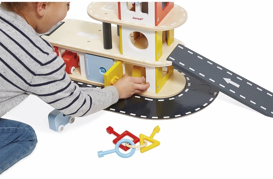 Perfect for developing fine motor skills and imagination. Early-years toy for children aged 2 and over. Bolid is the Janod vehicle collection! Conceived in pretty colors, this garage has been designed in wood, for children from 2 years old. Very comprehensive, with its little cars, its doors with keys, its lift and its many functions, this toy will give your child a lot of pleasure and hours of play!