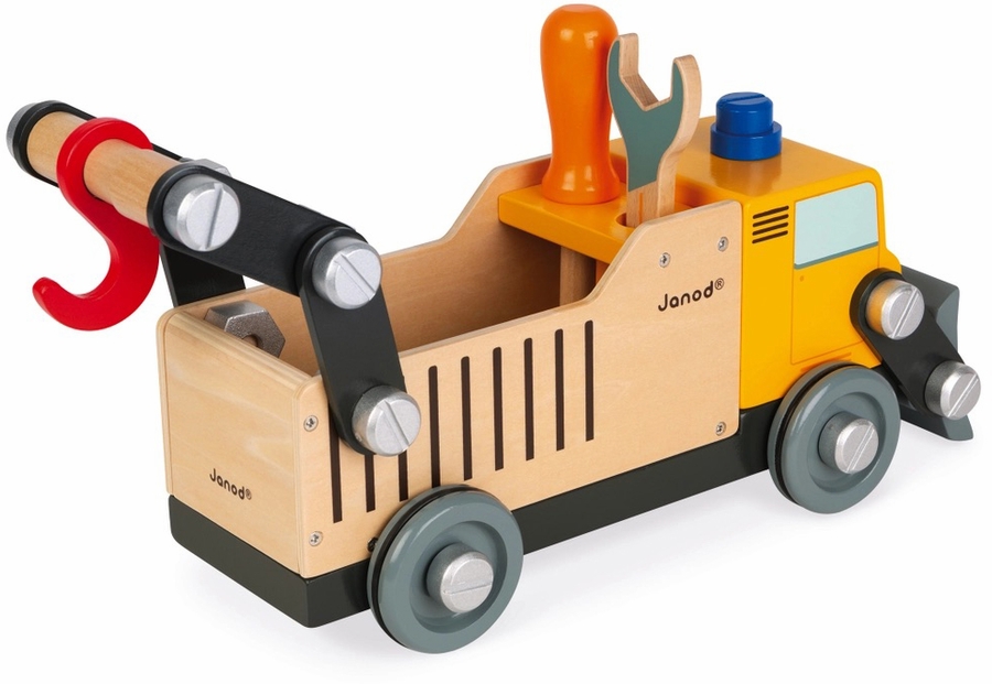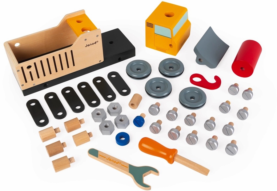 Attention all budding builders! With this build-it-yourself wooden truck, you’ll be fully equipped to handle the toughest, craziest construction projects! This 2-in-1 toy combines the challenge of building a fabulous builder’s truck using the nuts, bolts and screws provided with the joy of coming up with all sorts of adventures for the new truck to appear in! Once it’s built, your beautiful truck with its natural wood body and yellow paint will be ready to help kids aged 3 and over with the most complex building work! This 43-piece set includes 2 tools for assembling the vehicle and full assembly instructions. The truck is made of wood from sustainably managed forests.