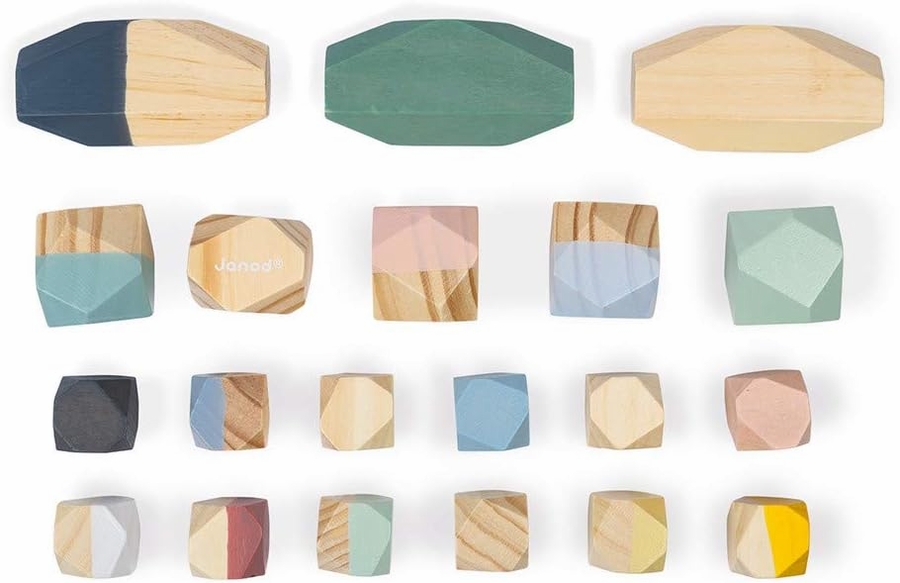 Discover a magnificent manipulation toy that gives free rein to the imagination of children aged 2 years and up! This game consists of 20 wooden stones with different shapes and cuts. They are also available in various colours and meld perfectly, thanks to their extremely soft pastel tone. By stacking these 20 lightweight wooden stones, your child will learn about construction and balance. They can follow their own instincts, assemble and combine each element as they see fit to try out their own experiments or even see how high they can go!