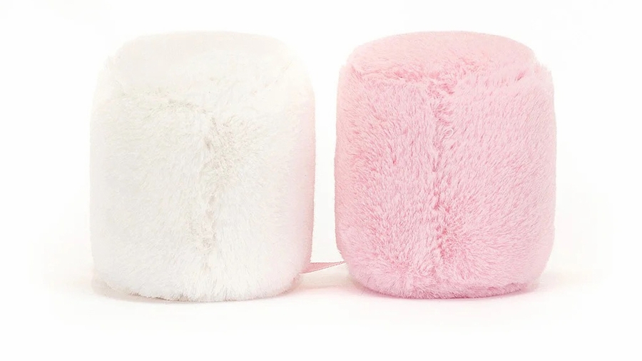 Trouble comes in twos! Amuseable Pink and White Marshmallows have a lot in common, like praline cord boots, stitchy smiles and rosy blushes. Linked with a pink satin ribbon, these cheeky mallows are friends for life.