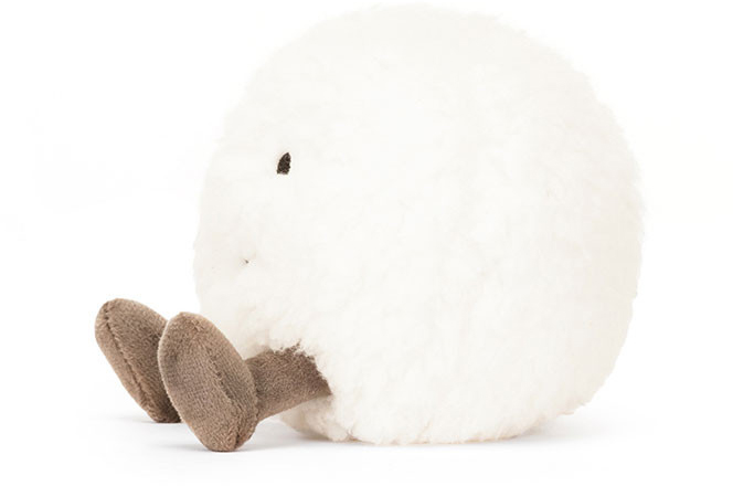 Amuseables Snowball is the roundest rascal, with dreamy-soft coconut tussles! Nuzzle this tubby bundle of hugs and dream of a cosy Christmas. Dashing about in mocha velour boots, this wintry wonder is off to have some outdoor fun. Who wants to roll down a big snowy hill?