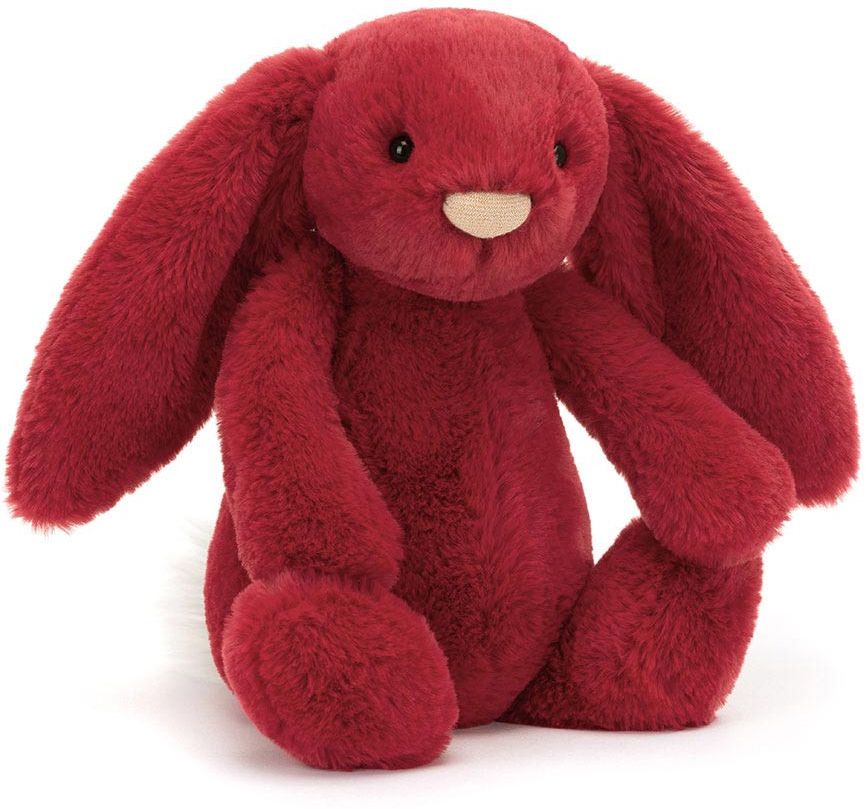 It's impossible not to nuzzle Bashful Luxe Bunny Scarlett. This divinely soft bunny has holly-berry fur and a white tufty bobtail. With bright, glossy eyes, cascading ears and a glittery-pink jersey nose, Scarlett is full of festive magic.
