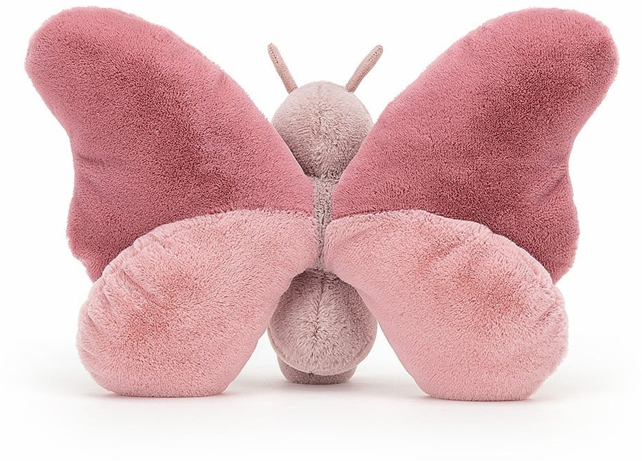 Fluttering in with a cheeky grin, it's beautiful Beatrice Butterfly! Rosy and cosy with a beany bottom, soft textured wings and suedey antennae, this bobbly buddy loves yummy nectar and playing all day in the garden!