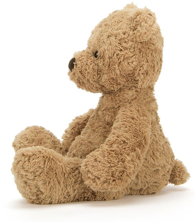 A sandy, dandy teddy, Bumbly Bear is simply scrummy. A ruffly, fluffy fellow with an extra-long snout for vintage style, he's a classic bear with a modern twist. His large head and tummy and chunky feet make him just the chap for bedtime hugs.