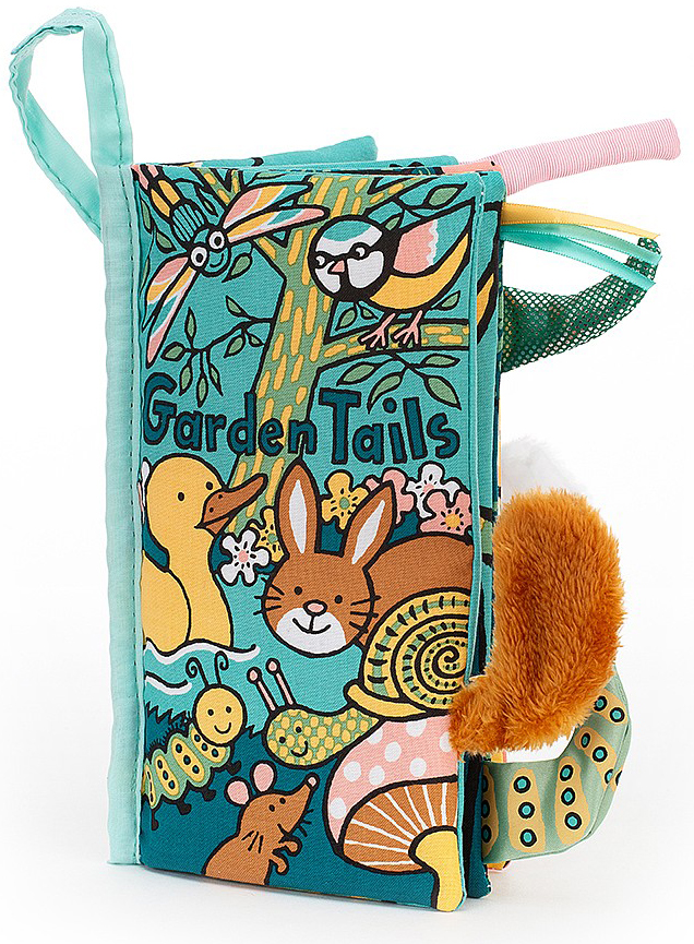 Shimmery, swishy, spotty and silky - there are so many sorts of Garden Tails! This cuddly cloth book is wonderfully wacky, with a velcro loop for buggy browsing. Discover a world of feely fun and learn which animal wags which tail!
