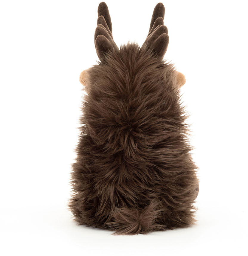Chunky, quirky and dreamy to hug, Merrick Moose is nosing ahead! This gorgeous moose has a huge almond muzzle with a textured lip and stitch-detail face. A gentle giant with caramel limbs, Merrick has mighty cocoa antlers, soft, shaggy fur and beany hooves. A stunning gift for wildlife fans.