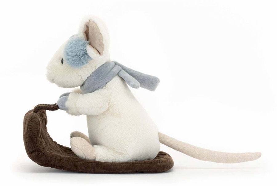 Out of the way – champion coming through! Merry Mouse Sleighing is as fast as a snowball, with blue mitts and earmuffs, a furry scarf, gorgeous ruched ears and a suedette tail. Riding a cord sleigh with stitch details and a braided handle, this is one intrepid mouse!