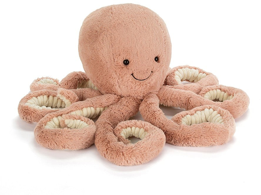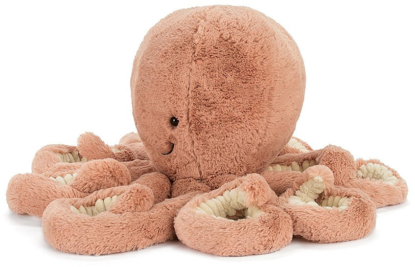 Get tangled up with gorgeous Odell Octopus! A squishy, splendid brick-red octopus, she has so much love to give! Smiley and silly, with bright, glossy eyes, she's a very friendly cephalopod. Odell has eight fine, curly arms with cosy cordy and classic fur. No surprise that she gives the best hugs in the ocean!