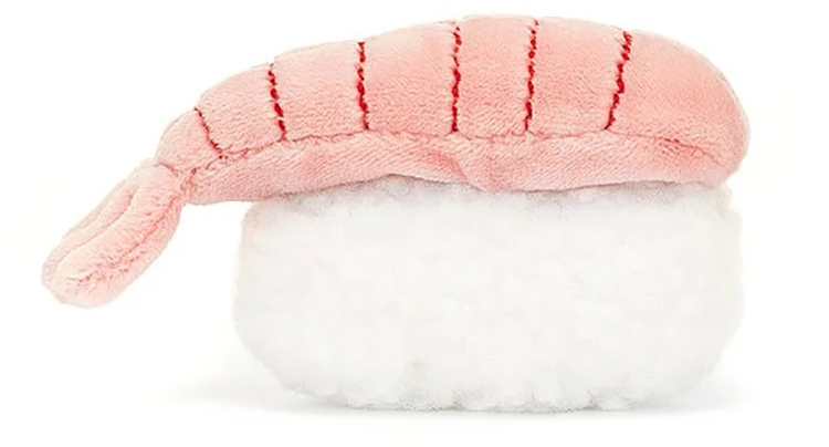 Always a style leader, Sassy Sushi Nigiri knows how to accessorise! This fleecy rice snack has an unusual hat – a pink shrimp with red-stitched segments and tail! Such a delicious combination, and one for the gourmand in your life.
