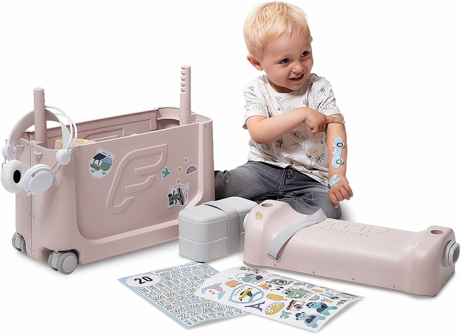 The BedBox™ is the world's only premium, ride-on suitcase for children with an in-flight bed or leg-rest feature. This travel essential combines Scandinavian style and aviation inspired design with practical features for the entire trip and allows your child to rest comfortably or sleep during long and short-haul flights. Fun and functional with ample storage, the BedBox™ holds your child’s must-haves. Once packed, let your little one ride it (or pull it) through the airport terminal for stress-free travel. Once the seat belt sign is off, transform the BedBox™ from a suitcase into a bed in 5 simple steps. The ride-on suitcase is for children 3-7 years old, and the bed feature is best suited for children over 2 years old. Officially approved by many airlines.