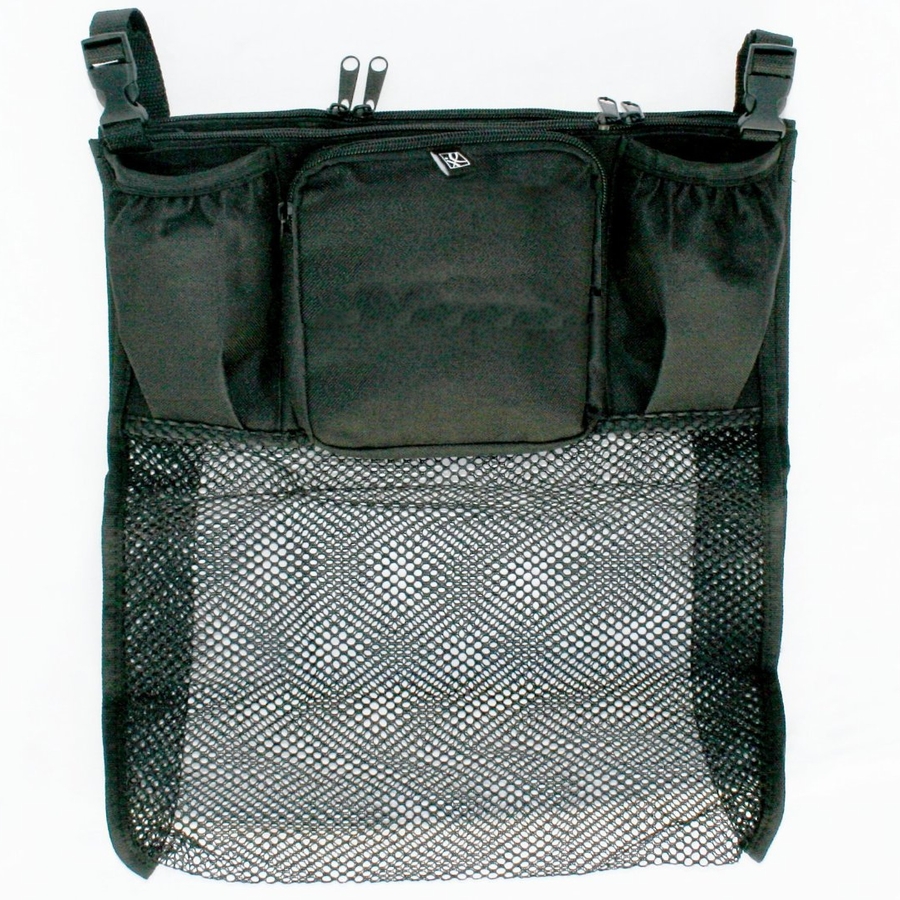 Cups N Cargo Stroller Organizer Stroller organizer for diapering, feeding and personal needs. Attaches to all strollers with adjustable buckle straps. Features 2 expandable pockets for bottles, cups or sodas. Zippered security pocket with reflective trim holds keys, cell phone, pacifier and other on-the-go necessities. Two zippered long pockets hold changing pad, wet wipes and more. Large EZ view mesh bag for bulky, wet items or sandy items. Magnetic closure secures cargo inside the mesh bag.