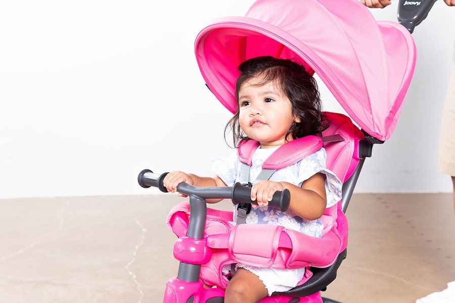 Your babe is ready to go! Remove the enclosed armrests and canopy to give your kiddo a little extra room while trying to balance on their own. If they’re not quite ready, that’s OK. Simply lock the pedals and use the adjustable parent handle to keep them on the right path.