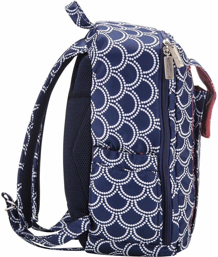 Glittering mermaid scales or the perfect strand of pearls... or perhaps whitecaps on a brisk sailing day. Classy seaside navy and shimmering white create a refined exterior, while the coral Palm Beach lining takes a dip into your playful side. This stunning print mixes and matches perfectly with all the other gems in Ju-Ju-Be?s Coastal Collection.