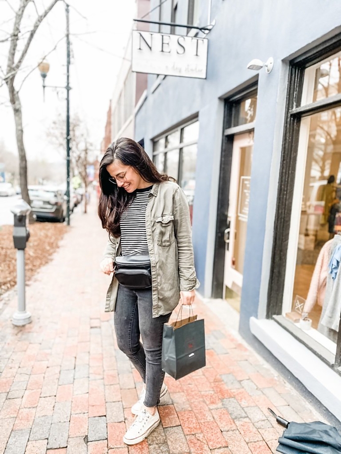 This fanny pack diaper bag has been a lifesaver! With toddler twins my hands are always full so this is the perfect place to tuck my wallet, phone, and keys for a shopping trip or a few diapers and a slim pack of wipes when I may need them but don’t need a full diaper bag. I have a larger backpack diaper bag that stays in the car except for longer outings where I really need snacks, extra clothes, etc right on hand. Otherwise I hugely prefer this!