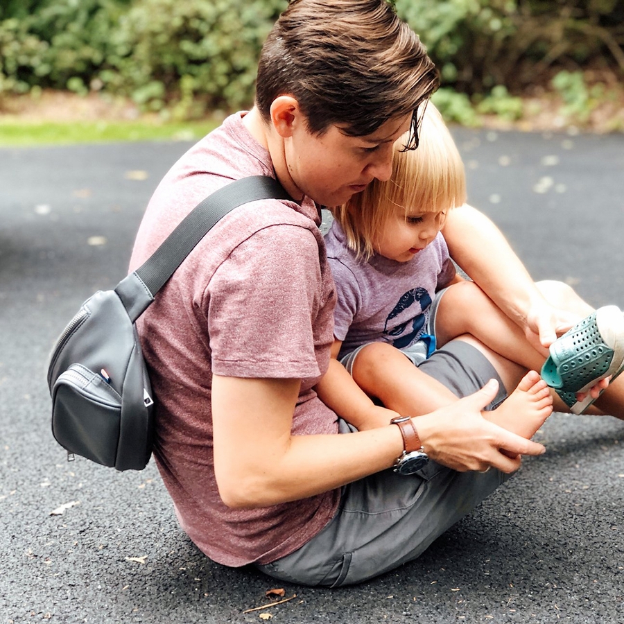 This fanny pack diaper bag has been a lifesaver! With toddler twins my hands are always full so this is the perfect place to tuck my wallet, phone, and keys for a shopping trip or a few diapers and a slim pack of wipes when I may need them but don’t need a full diaper bag. I have a larger backpack diaper bag that stays in the car except for longer outings where I really need snacks, extra clothes, etc right on hand. Otherwise I hugely prefer this!