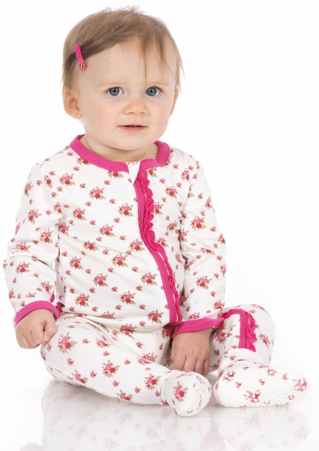 KicKee Pants Muffin Ruffle Footie with Zipper - Natural Rose Trellis, Newborn