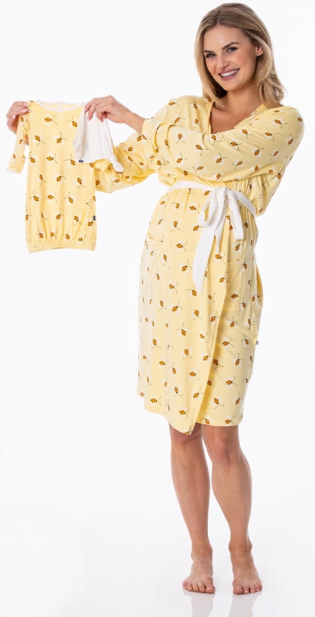 Pregnant or Nursing and love our Solid Basic Robe, but need a little extra room for that baby bump? Well, you are in luck! With our new Maternity/Nursing Robe, you can enjoy all of the same delightfully soft and stylish perks of our Basic Robe with all the added benefit of extra fabric and stretchiness for the loose fit during and after your pregnancy! Designed with ease, comfort and convenience in mind, our maternity robe features two front pockets, as well as inside and outside ties to help secure it in place. And the best part is that once your little one enters the world, you can deck him or her out in an adorable matching layette gown set.