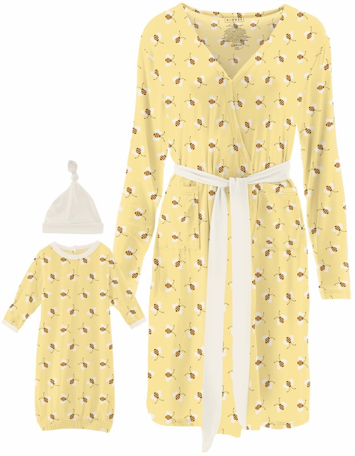 KicKee Pants Women's Mid Length Lounge Robe & Layette Gown Set - Wallaby Bees, M
