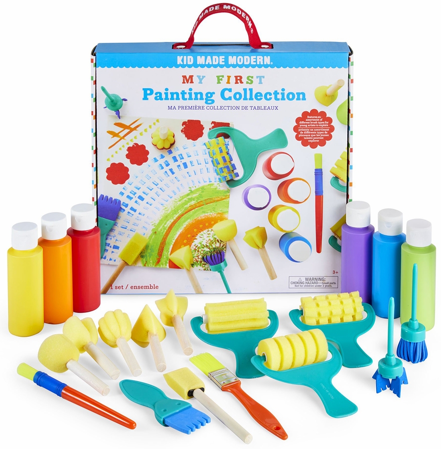 At Kid Made Modern we believe you’re never too young (or old) to exercise your creative muscles. Our My First Painting Collection was designed for the youngest artists to try their hand at painting. The kit features a variety of brushes, daubers and rollers for kids to explore.
