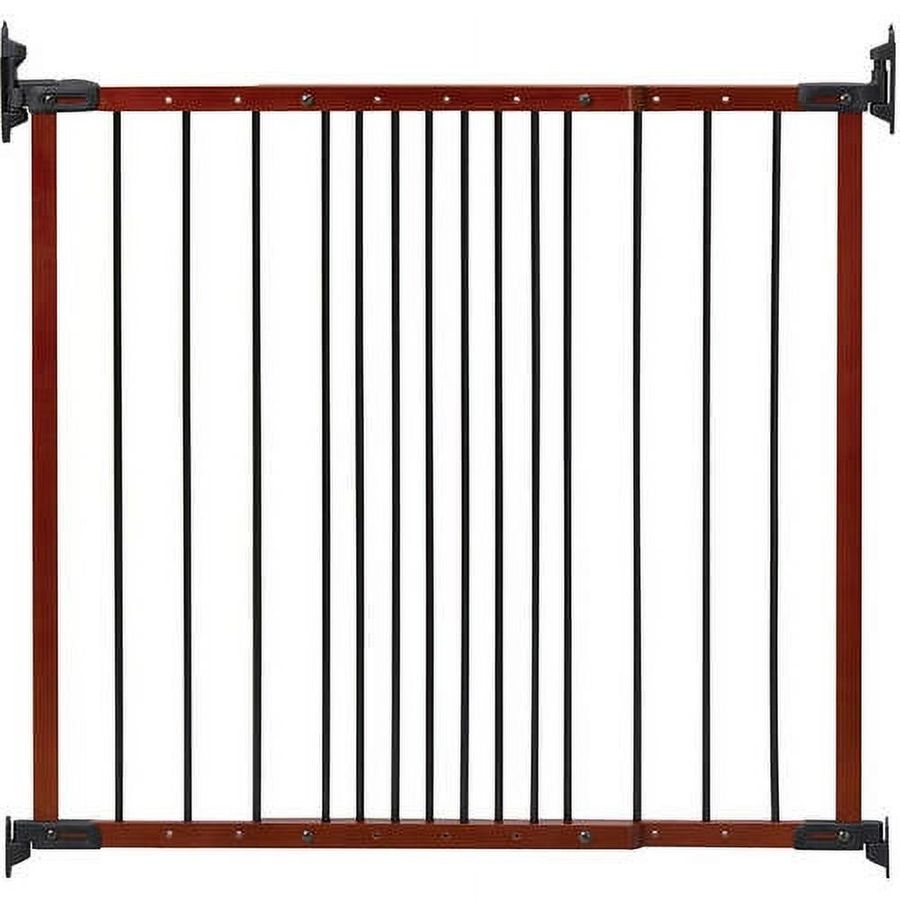 Easy one-hand adult operation quick-release hardware allows the gate to be easily removed when not needed. Made from furniture-grade hardwood in cherry and strong tubular steel in black, the unique material design will accent any home decor while providing safety.