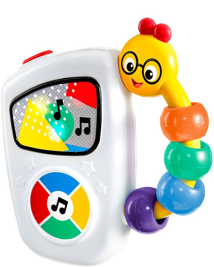 The award winning Baby Einstein™ Take Along Tunes Musical toy is made for little maestros. This easy to grasp, on the go toy is your little musician’s opening act and will quickly become a favorite. It’s important to give your baby toys that play music to foster music appreciation at a young age. With the Take Along Tunes musical toy, babies can use the large button to toggle their way through recreated classical masterpieces from Chopin to Mozart and more. Colorful lights dance across the screen to the rhythm of each melody, captivating your baby while encouraging both auditory and visual perception.