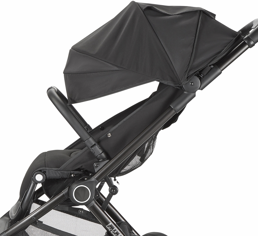 - Full-coverage sun canopy with a UPF50+ rating and pop-out visor
