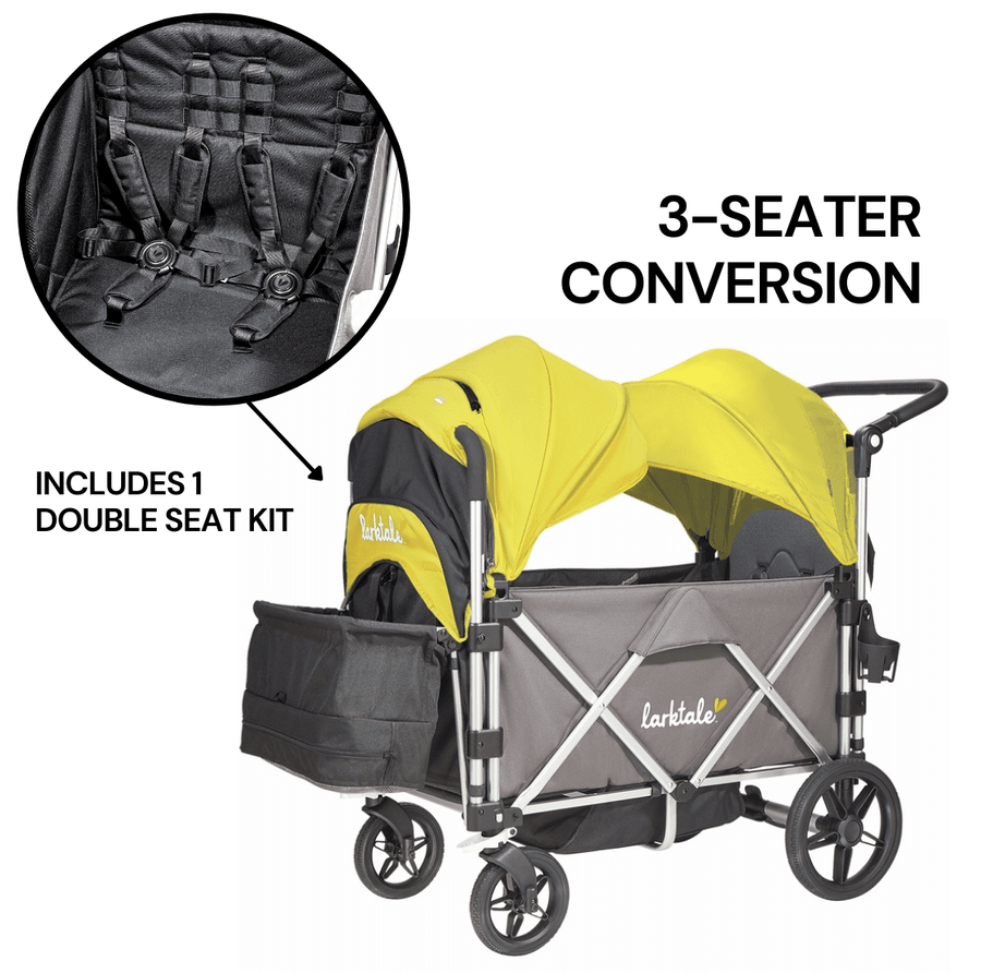 Simply attach the included double seat kit to one seat of the Caravan to make your caravan a 3-seater, toting around your littles and their closest friends. Your little Larktale riders can weather it all with the included multi-purpose sun canopies for the Larktale caravan™ stroller/wagon.