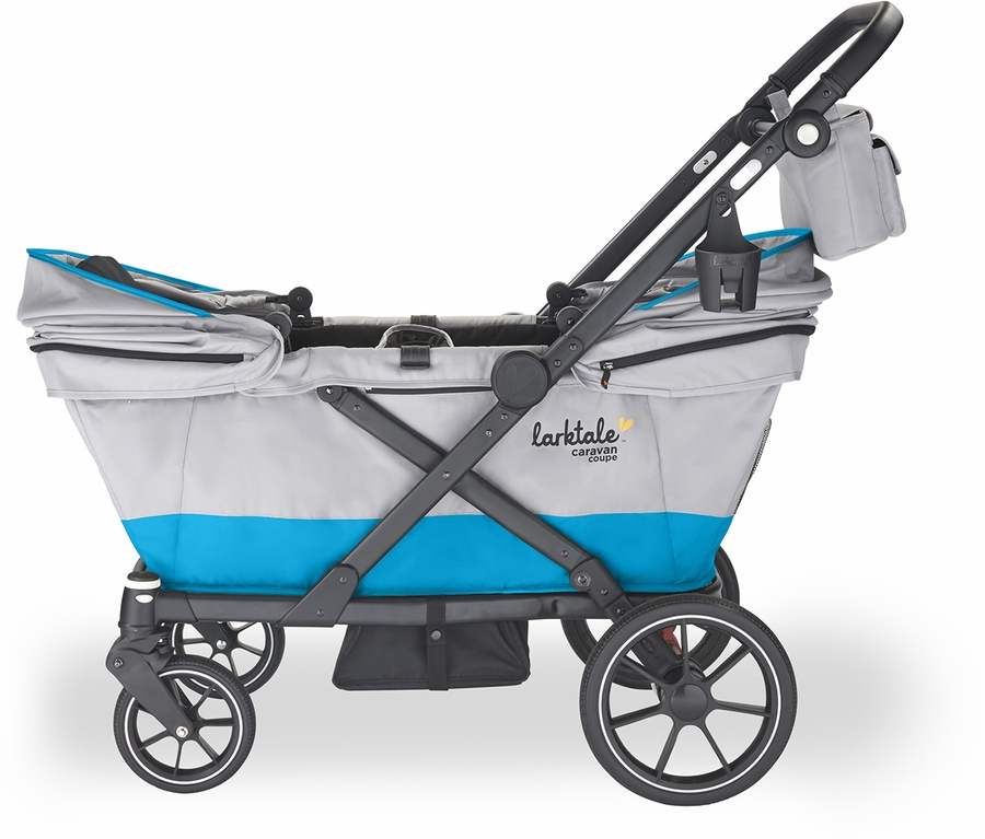 The Larktale caravan coupe V2 offers all the features of a large stroller/wagon, in a more nimble and compact package with an impressively small fold, all while maintaining the comfortable seating and higher weight capacity you crave for your growing kiddos. The V2 version includes a new storage basket that can be attached to either the front or the rear of the wagon and features a no-rethread harness system.
