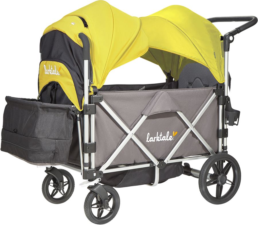 I researched a lot of wagons and loved the features of this one. It is very spacious and perfect for more than one child. I love that it has actual seats for the kids and the 5-point harness system. The wagon is very well made, comfortable and spacious. The canopies are also amazing. It is definitely worth purchasing. I highly recommend Larktale products.