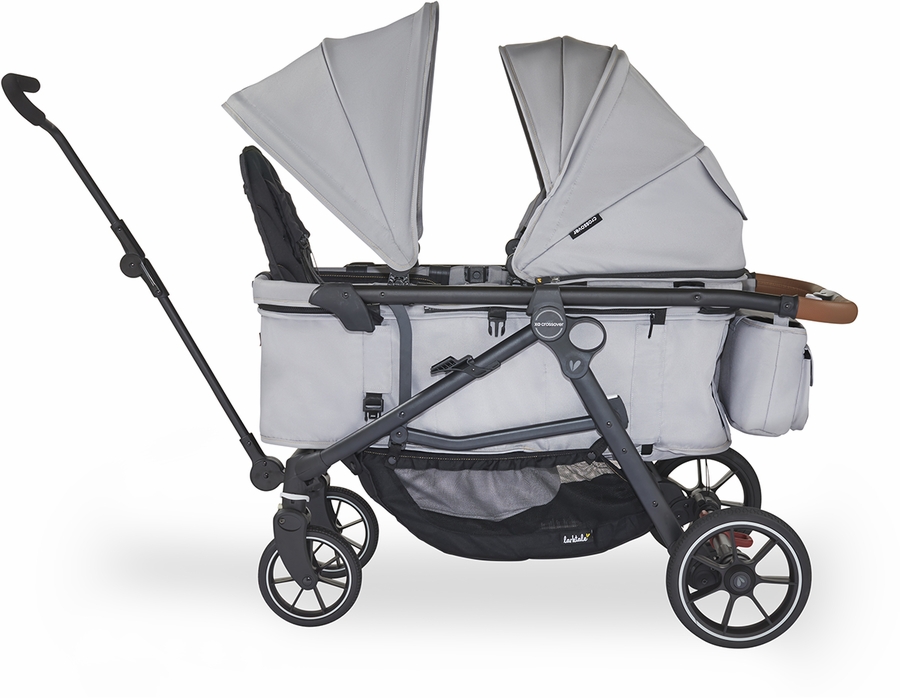 - Converts from a single newborn-ready stroller into a double pull wagon in a few easy steps with no tools necessary.