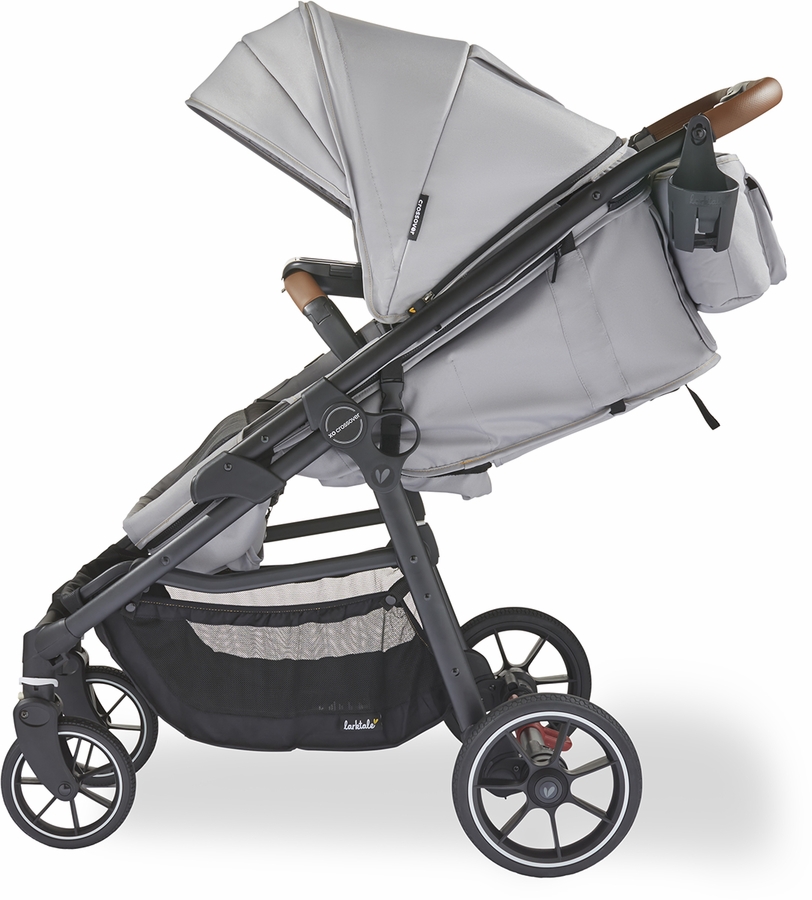 Redefining the stroller/wagon category, the Larktale crossover™ is a first-of-its-kind convertible stroller/wagon. Starting as a full-featured single stroller that’s suitable for a newborn, the crossover™ converts quickly and easily into a single or double-seater pull wagon. Parents no longer need to choose between a traditional stroller and a stroller/wagon, or invest in multiple products – the crossover™ truly combines both into one easy to use device without compromising on features. No tools or separate conversion kits are needed to complete the transition, making it easy for parents to change their strolling style to suit the day’s activities. Beyond the flexibility of this all-in-one stroller-to-wagon innovation, parents will also love the extra large sun canopy with air-flow panel and peek-a-boo window, a stroller organizer console on the leatherette handlebar, an included cup holder, leatherette wrapped bumper bar and snack tray; a mesh cargo divider for sectioning off the chassis; all-wheel suspension and plenty of storage space. The stylish crossover™ is suitable for children from birth to 50 lbs in stroller mode or from 6 months to 50 lbs per seat in double-wagon mode, and a car seat adapter is available to accommodate a newborn. The compact fold of the crossover™ allows this all-in-one stroller and wagon to be easily stored and transported.