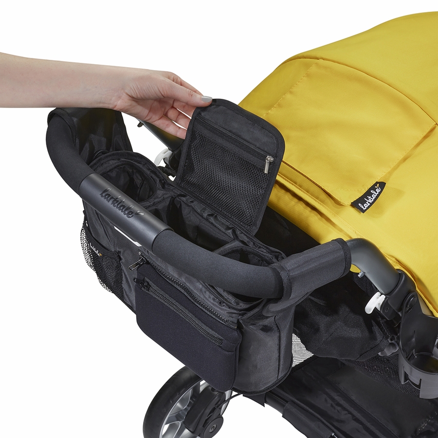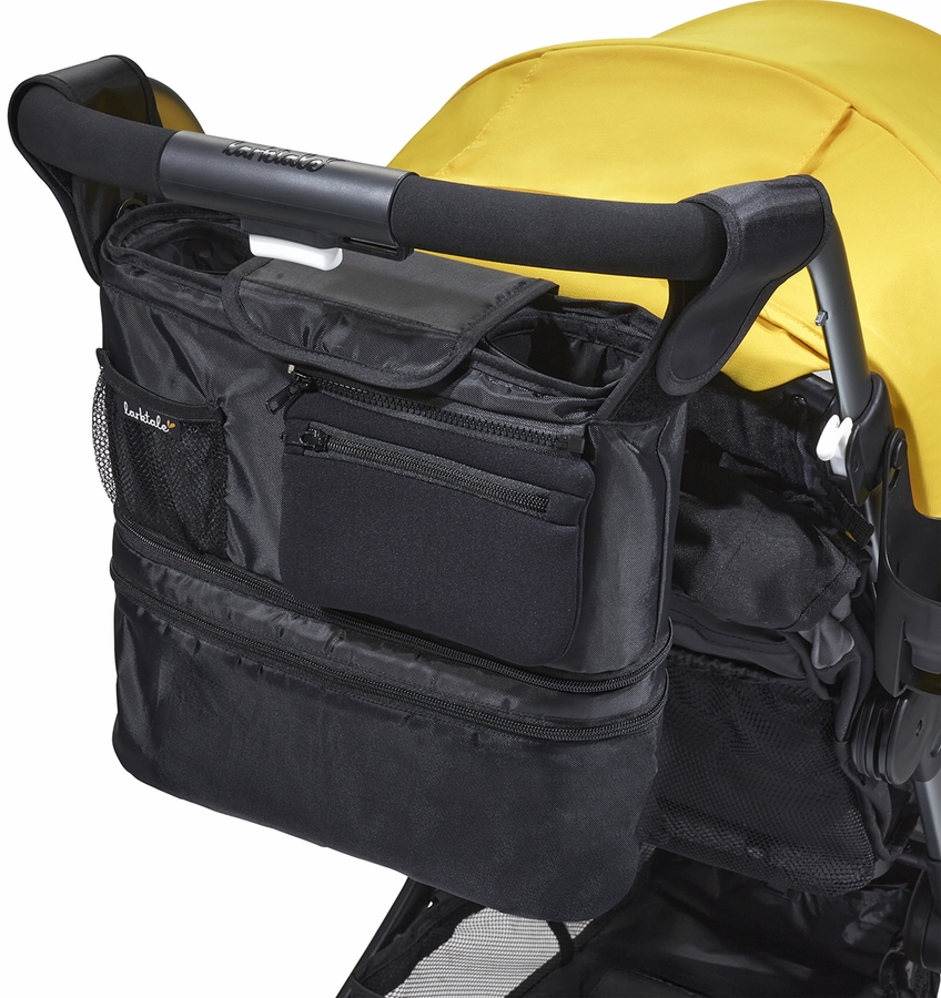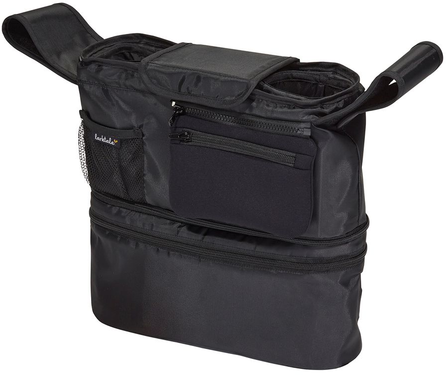 Stroll farther and stay out longer with the Larktale Stroller Organizer. Attaches to the handlebar of your stroller or stroller/wagon to help keep your personal items close at hand. Great for families that need to keep medicine or food items cool while on the go, the Stroller Organizer features a removable cooler pouch that is roomy enough to hold up to 6 standard-sized cans or small baby bottles. The top console of the Stroller Organizer will hold two beverages and features multiple pockets and compartments to hold your personal items. Now you can keep the whole family refreshed and bring everything you need with the Larktale Stroller Organizer
