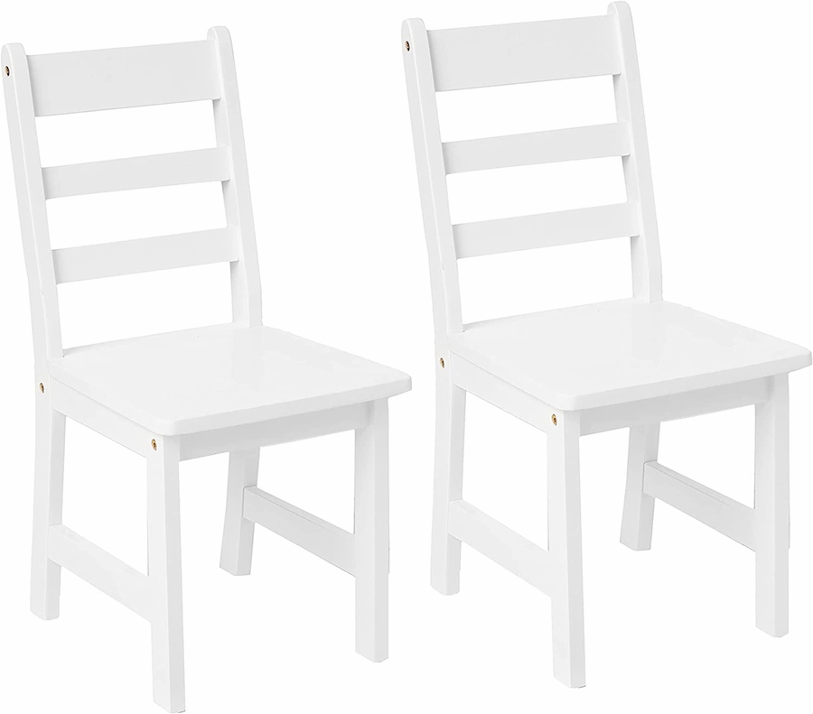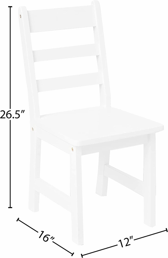 Made in Thailand, the table and chairs benefit from durable beech wood construction. The chairs feature standard three-slat ladderbacks for ample back support. A non-toxic white finish enhances the set's appearance, while it also thwarts splinters. To clean the furniture, wipe pieces down with a soft damp cloth and use a mild soap on marks. Dry immediately to prevent water damage to the wood. The set's design best befits indoor use, and avoid using markers and non-washable paints to preserve the furniture's veneer. Upon delivery, some assembly is required.