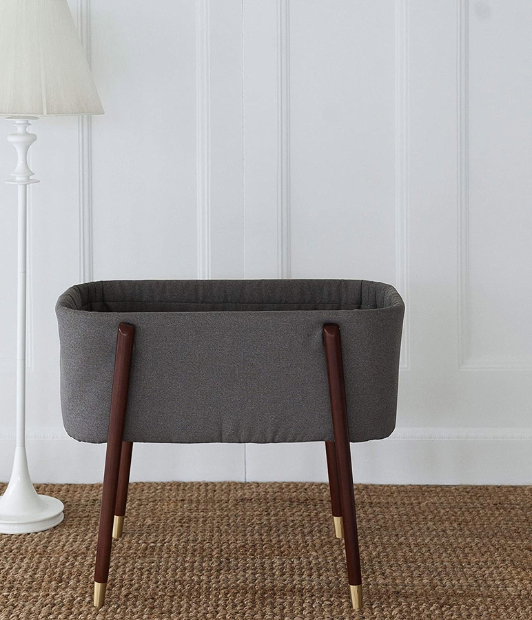 Cradle your little one in comfort with the Bliss Sova Bassinet. Featuring a density foam mattress pad with a vinyl cover and extra deep walls for your baby's safety, this modern bassinet has solid wood legs with metal accents for a high-fashion look.