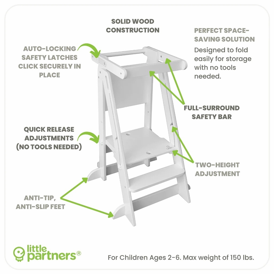 The all-new Learn ‘N Fold™ Learning Tower® by Little Partners® is a folding Learning Tower® that has been safely designed with the guiding principles of hands-on learning in mind, bringing your little one confidently and securely to counter height to work and play alongside parents, caregivers, siblings and friends.