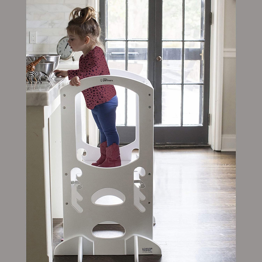 The Original Learning Tower™ has been carefully designed to provide a secure environment to stimulate a child’s imagination and allow it to blossom. By raising a child up to counter height, it nurtures a child's innate desire to be independent and to participate alongside his or her parents and siblings, whether it’s to help out with nightly dinner preparations, bake special holiday recipes, or get crafty. For children, the world is a magical and curious place. They learn by mirroring Mommy and Daddy with the ultimate goal of being able "to do it myself.” The Original Learning Tower allows them to feel like an active member of the family, fully engaged in the learning and creative process. A solid wood construction comprised of layers of poplar and birch make the Learning Tower safe, stable, and built to last as little ones grow, complete with a lead-free, non-toxic finish that cleans easily with a damp cloth. The Original Learning Tower’s height is fully adjustable to fit your little one and your home.