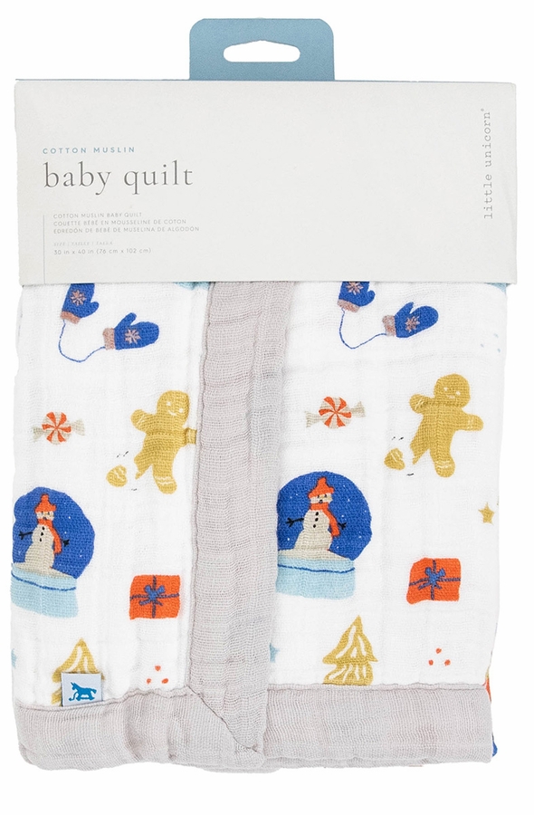 Little Unicorn Cotton Muslin Baby Quilt - Christmas Time